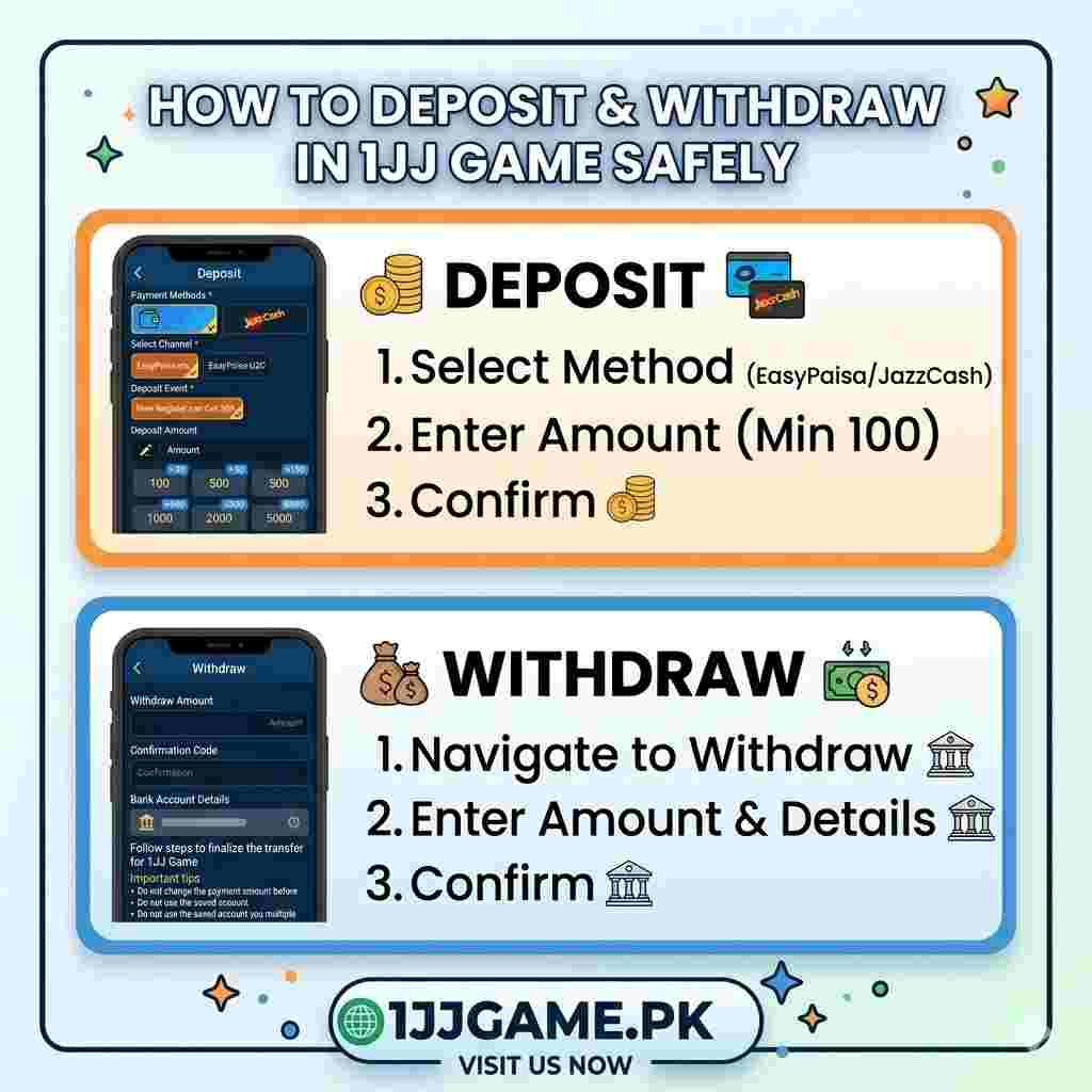 Looking to Deposit money on 1JJ Game You’re in the right place! In this guide, we’ll explain dhow to add funds to your 1JJ Game wallet securely and quickly using trusted methods like JazzCash, Easypaisa, and Bank Transfer. Whether you’re a new user or a regular player, this guide will help you complete your deposit without any issues.